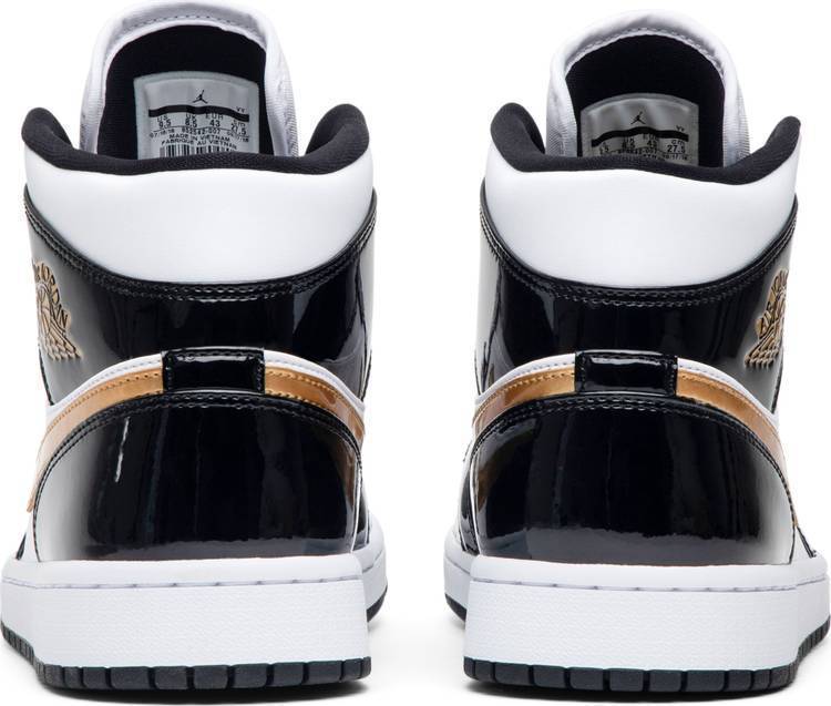 Nike Air Jordan 1 Mid Patent 'Black Gold' Shoes Basketball Men Sale Size US 8, 8.5, 9, 10, 11